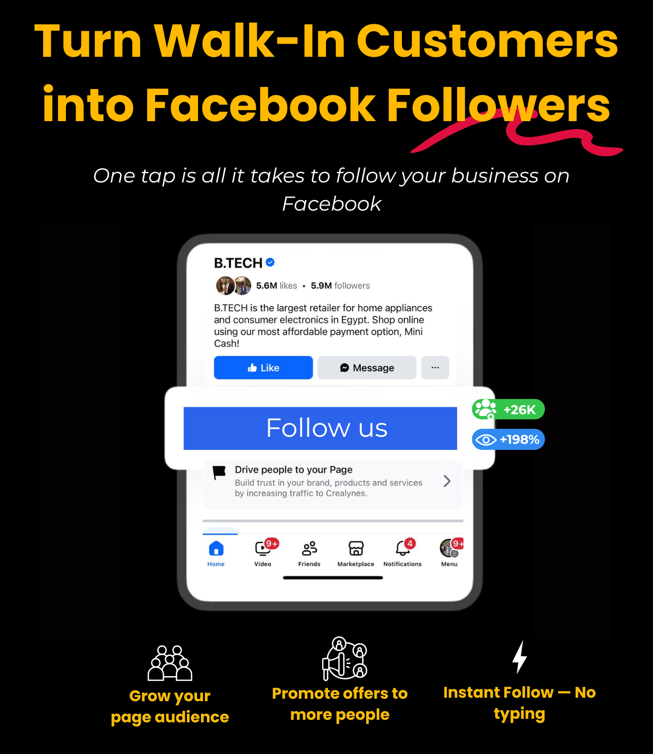 Grow your followers and keep customers engaged with offers, posts, and updates.